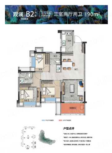 3室2厅1厨2卫B2户型景融·南湖里户型 (127㎡建面)