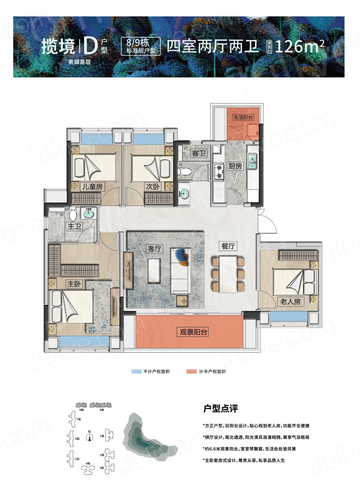 4室2厅1厨2卫D户型景融·南湖里户型 (130㎡建面)