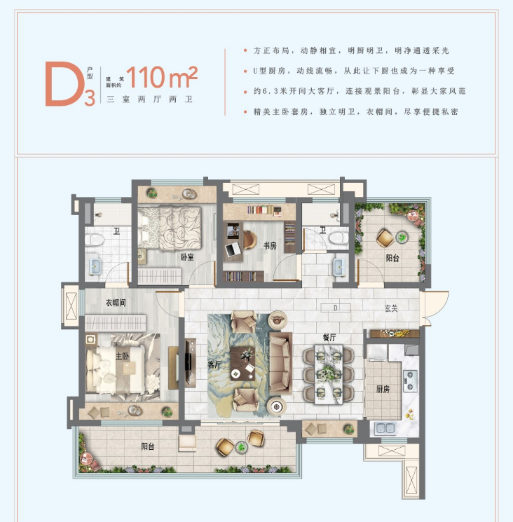 三房两厅两卫110方户型 (110㎡建面)