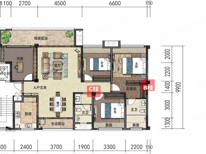 3室2厅1厨2卫S7组团C户型 (165㎡建面)