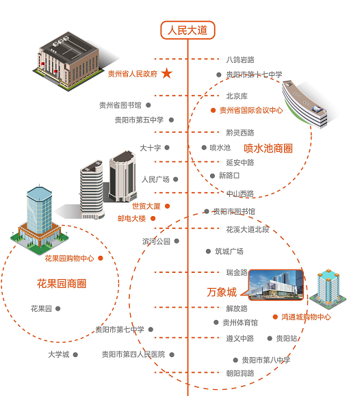 【区域发展】 城市南门户 GDP排名第一 项目所在南明区是主城政治,文化,经济,教育等核心区域,强省会战略下实施城市更新三年行动计划,迎来新一轮发展机遇。上半年南明区GDP实现446.12亿元,排名贵阳第一 招商势头猛 赋能高质量发展 2022年1至7月,全区实现上报产业到位资金42.97亿元,其中工业到位资金11.24亿元,引进优强企业34家。高质量强势头的招商引资,为推动南明区“强省会”发展注入加速器。 主城核芯区 坐拥20万+消费人潮 润街择址人民大道。作为贵阳老城核芯中轴,政商中芯,润街辐射约20万+常住居民,更辐射全省客群,坐享城市发展头排红利,发展潜力无限。