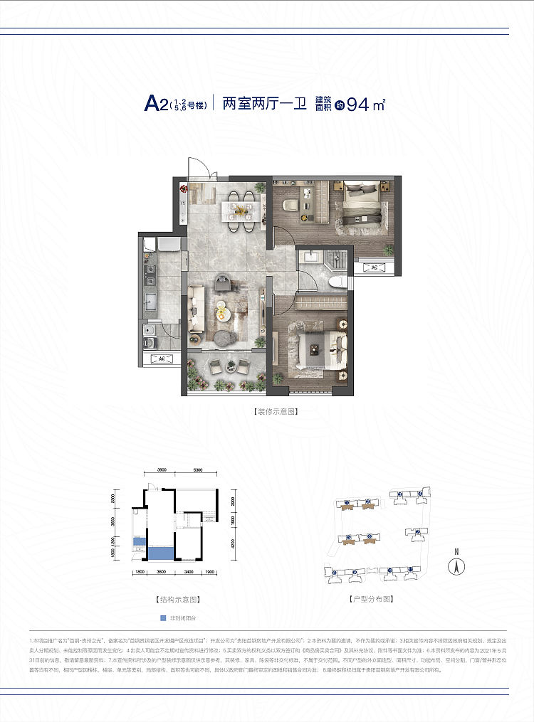 | 两室两厅一卫 | 94㎡ | 约104万(11000/㎡) | ||||